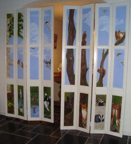2 Raampanelen (luiken) 220 X 110 cm met olieverf beschilderd